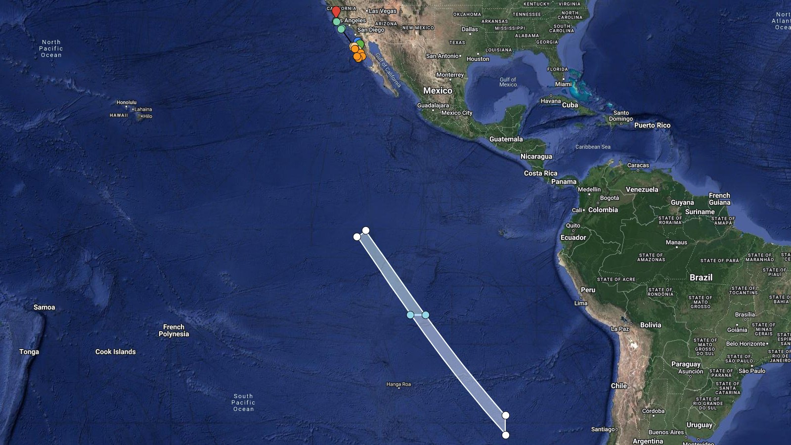 LHA map for #Starlink Group 7-10 from VSFB SLC-4E NET 11 Jan ~08:59 UTC, alternatively 12 to 16 Jan based on issued NOTAM/NOTMARs. Planned B1061.18 recovery ~642km with estimated fairing recovery ~693km downrange. Stage2 debris reentry in East Pacific. https://bit.ly/LHA-32