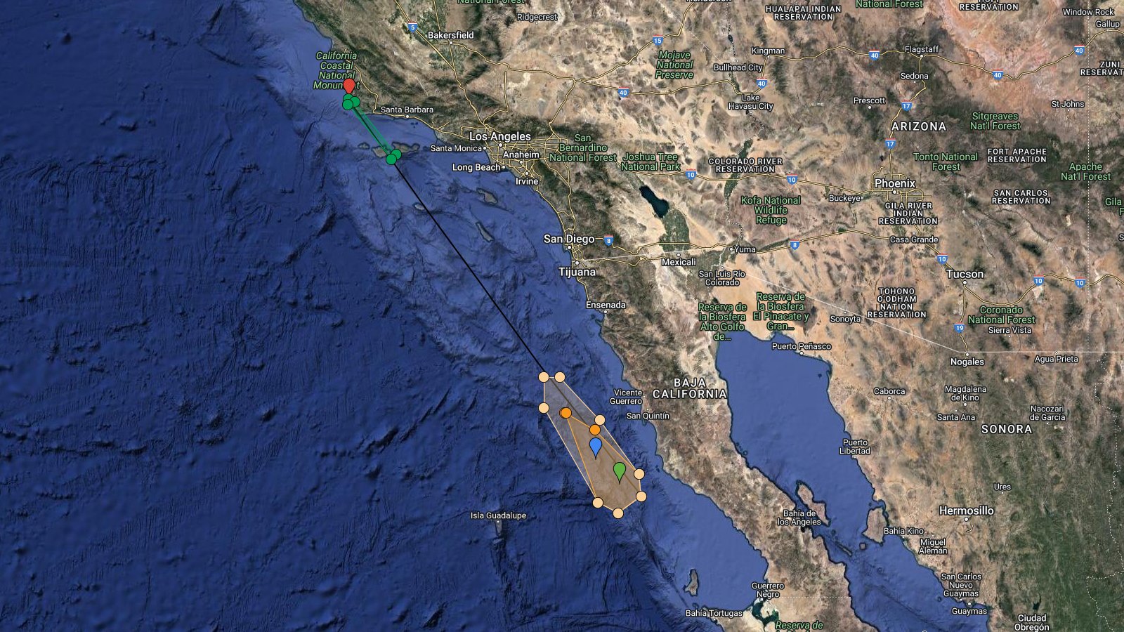 LHA map for #Starlink Group 7-11 from VSFB SLC-4E NET 19 Jan ~04:00 UTC, alternatively 20 to 25 Jan based on issued NOTAM/NOTMARs. Planned booster recovery ~642km with estimated fairing recovery ~693km downrange. Stage2 debris reentry in East Pacific. https://bit.ly/LHA-32