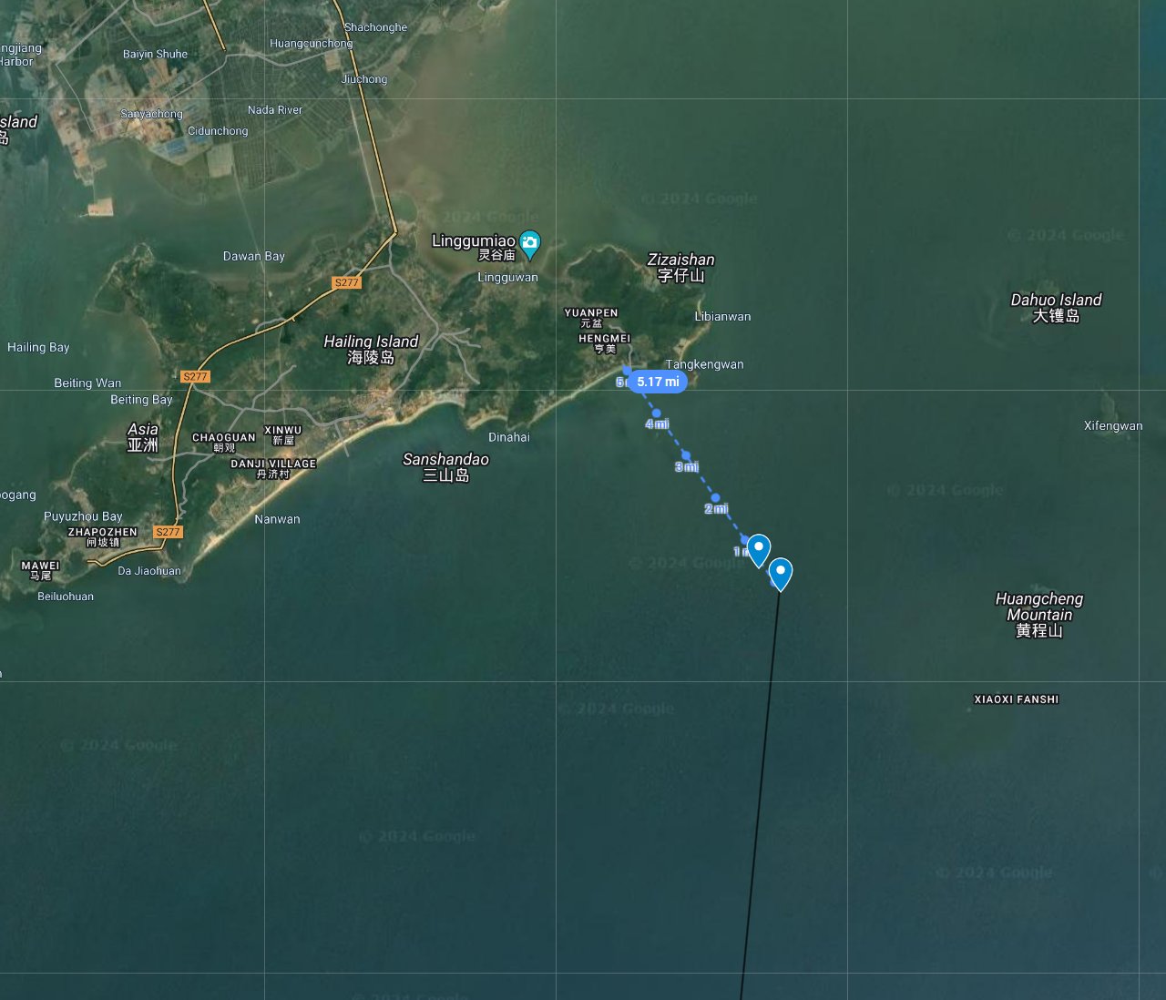 С этого же судна и тоже из Южно-Китайского моря были пуски 06/12/23 Jielong 3 и 26/12/23 Long March 11, оба удачно. Новый и единственный специализированный корабль не стали перегонять из Жёлтого моря... Но и взяли проверенный, а не абы какой попавшийся  ;)