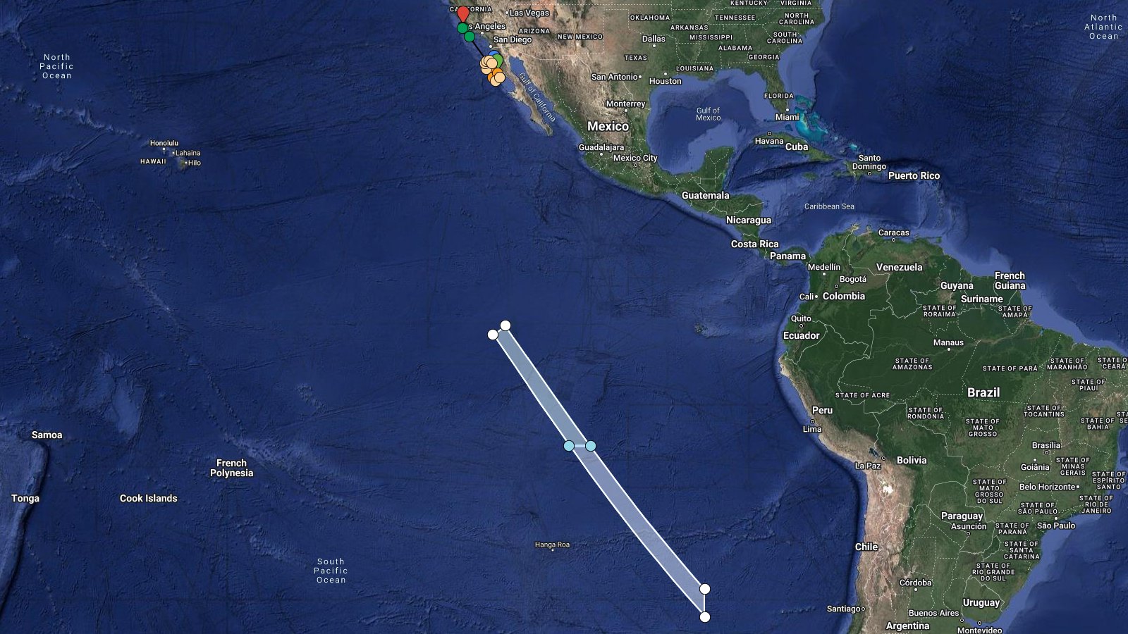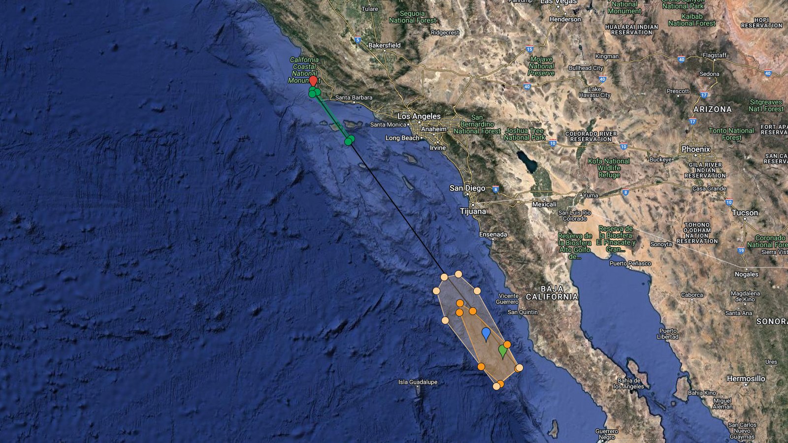 LHA map for #Starlink Group 7-13 from VSFB SLC-4E NET 07 Feb ~01:39 UTC, alternatively 08 to 10 Feb based on issued NOTAM/NOTMARs. Planned booster recovery ~642km with estimated fairing recovery ~693km downrange. Stage2 debris reentry in East Pacific. https://bit.ly/LHA-33