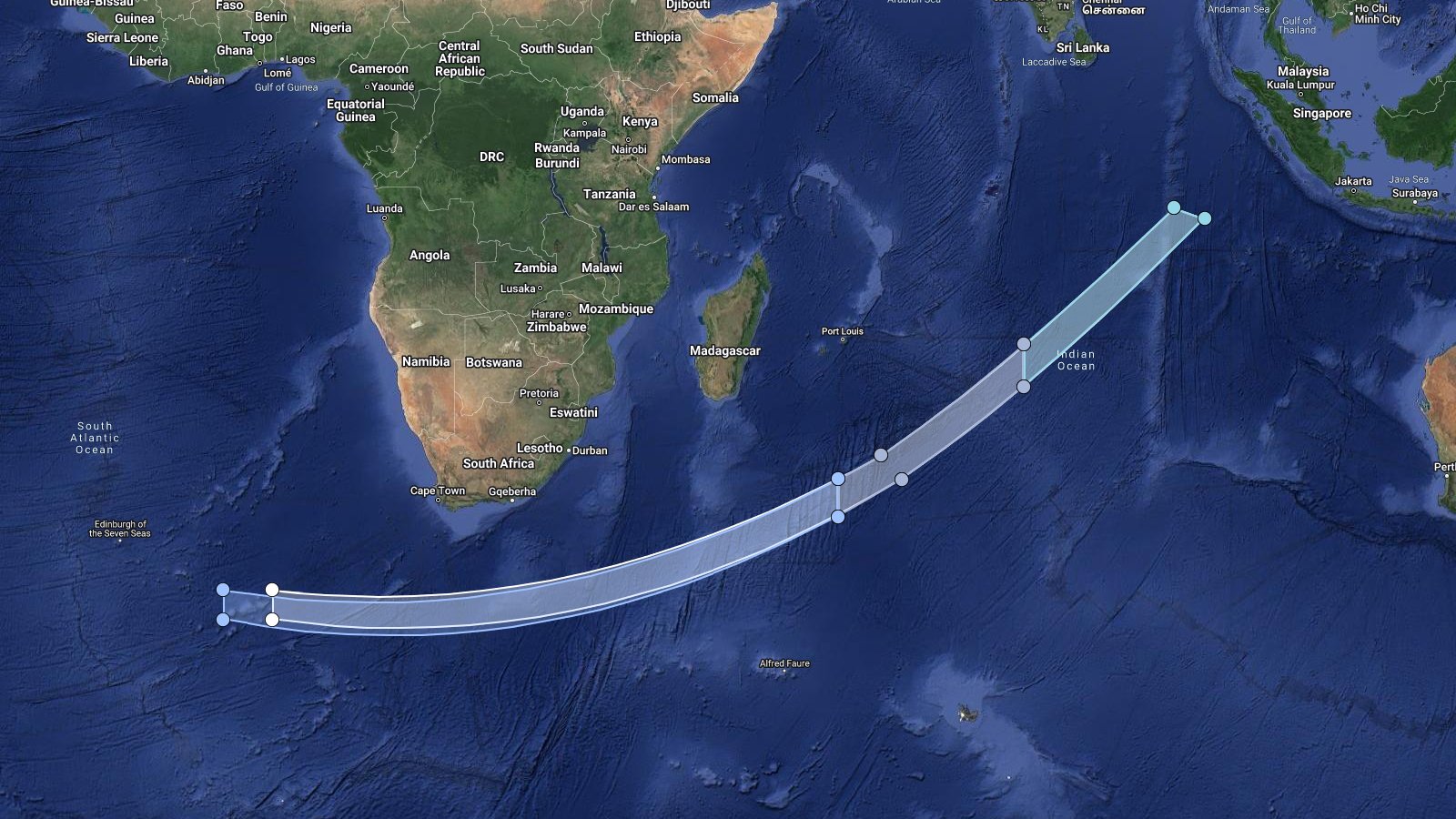 LHA map for #Starlink Group 6-39 from CCSFS SLC-40 NET 24 Feb ~21:59 UTC, altern. 25 Feb to 01 Mar based on issued NOTAM/NOTMARs. Planned booster recovery ~630km with estimated fairing recovery ~686km downrange. S2 debris reentry area in Indian Ocean. http://bit.ly/LHA-33