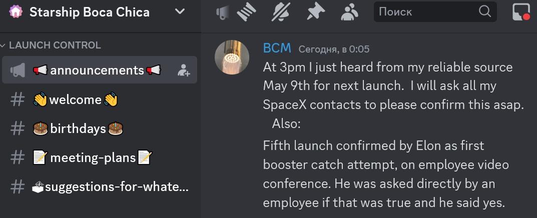 Цитата: RaZoom от 06.04.2024 19:22:41Мария Пойнтер поделилась в своём дискорд-канале, что на данный момент IFT-4 планируется на 9 мая.