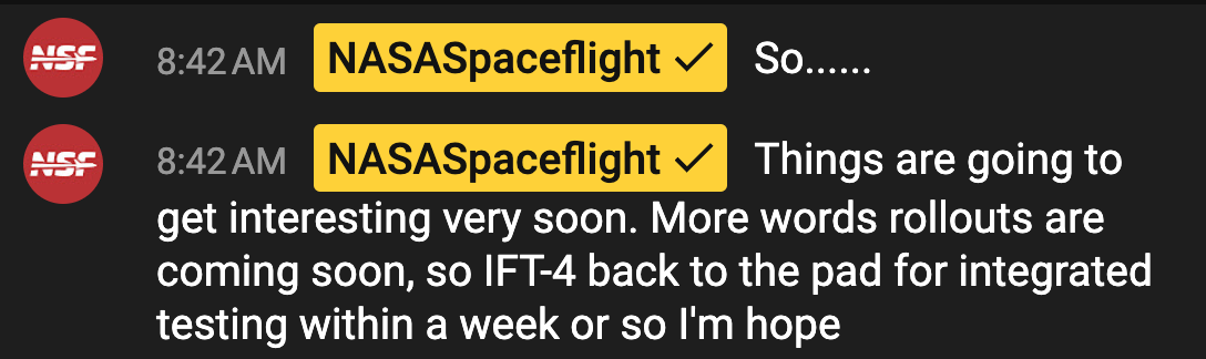 Kshatriya(NASA) also noted that the inter-tank cryogenic propellant transfer test on the third Starship flight last month was successful by all accounts, although analysis of data from it is ongoing.
