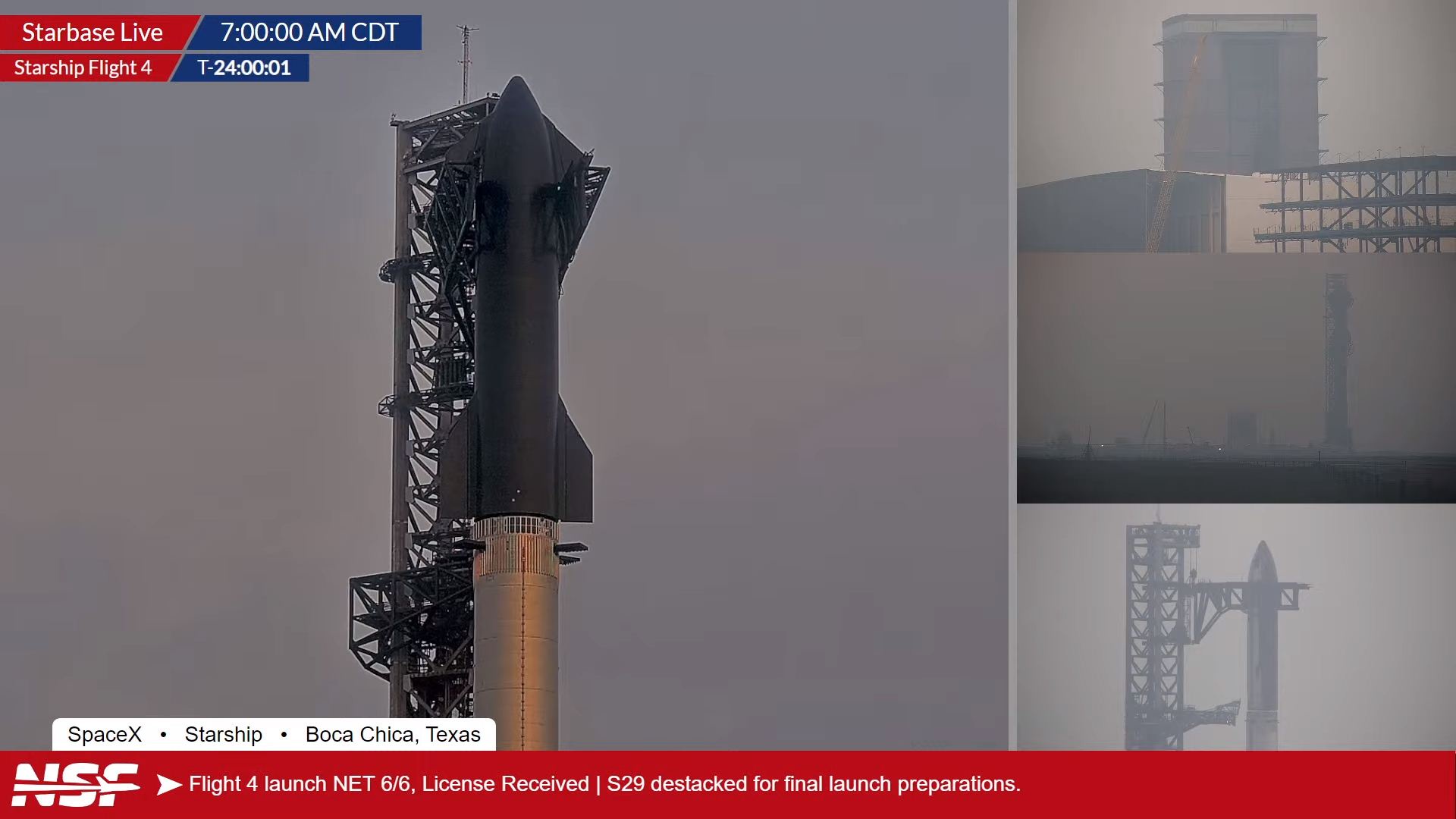 Super Heavy/Starship (B11/S29) – четвертый испытательный полет – Starbase,TX – 06.06.2024 12:50 UTC