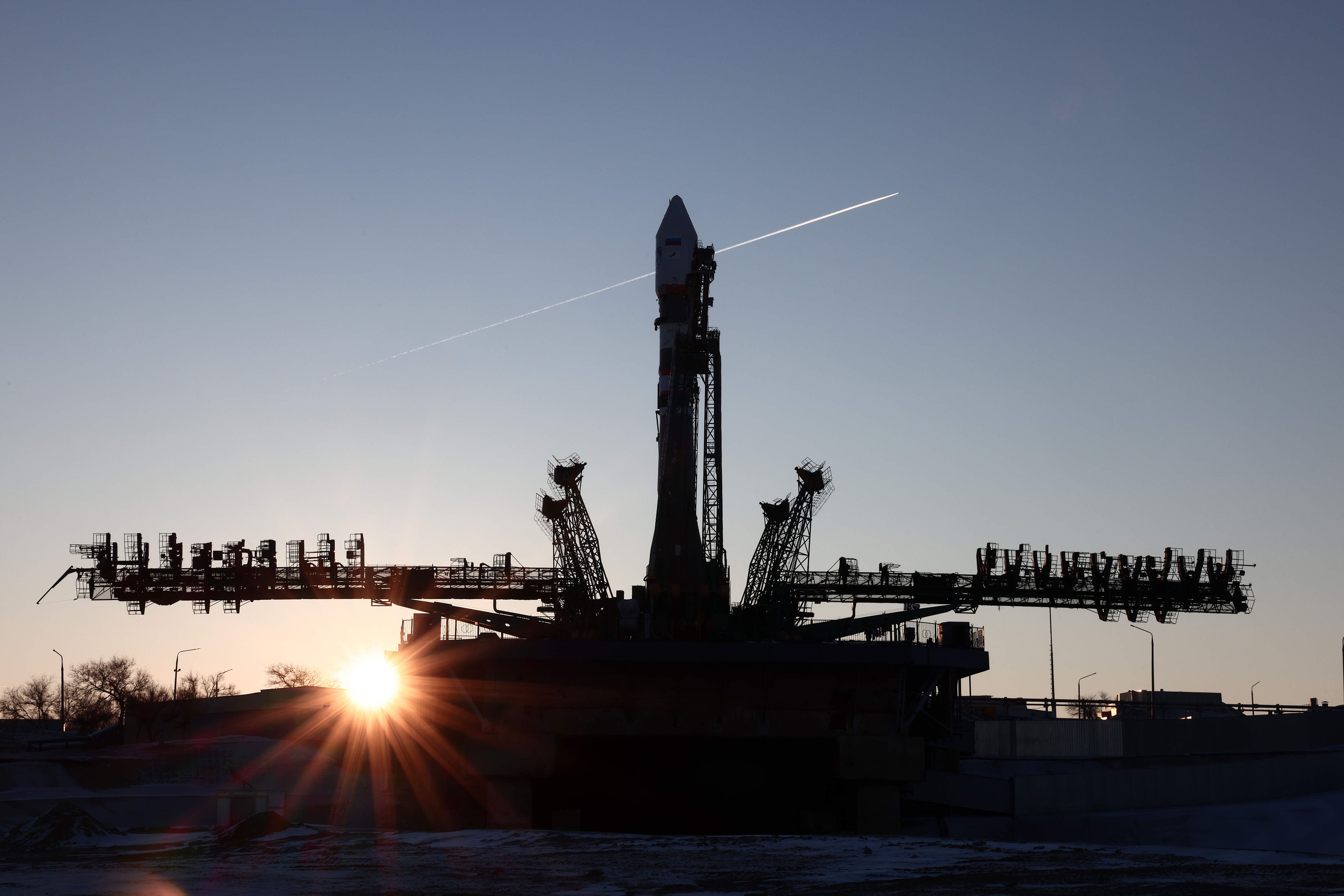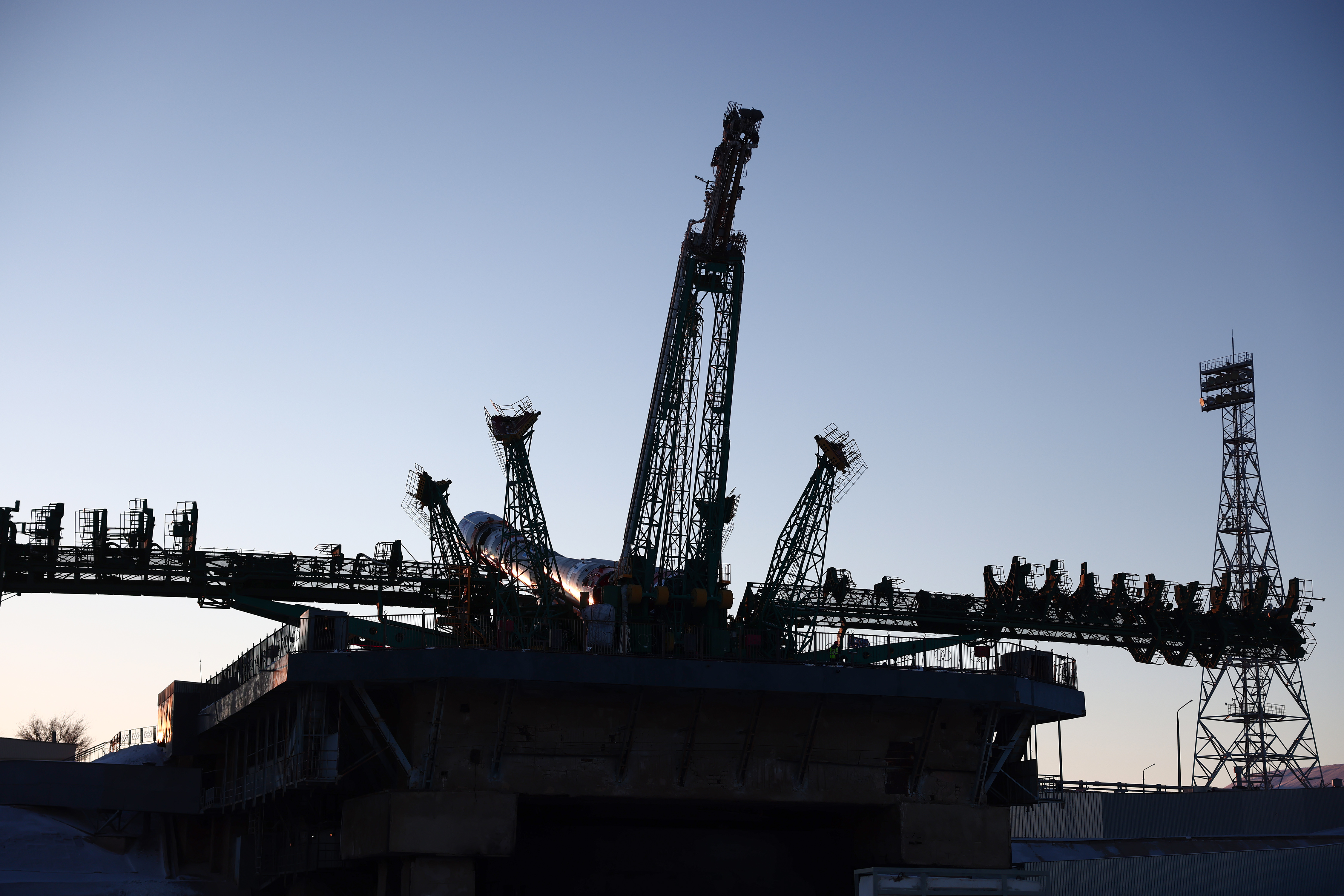 После установки ракеты в вертикальное положение на стартовом комплексе специалисты предприятий Госкорпорации «Роскосмос» продолжили её подготовку к пуску.