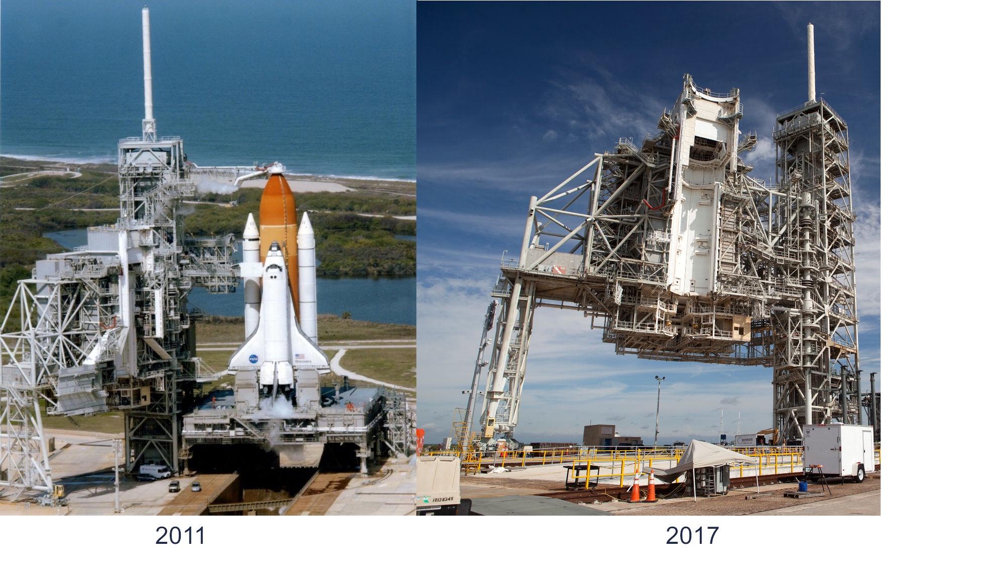 Так выглядела Space Shuttle Rotating Service Structure в 2011 г. и в 2017 до демонтажа: