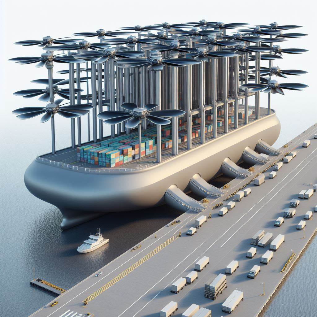 1. **Вес груза:** Стандартный 20-футовый (TEU) грузовой контейнер может весить до 24 тонн в полностью загруженном состоянии. Таким образом, 100 таких контейнеров могут иметь общий вес более 2400 тонн. Подъем такой массы требует огромной мощности и создания масштабной тягово-силовой установки, что сегодня выходит за рамки существующих технологий мультикоптеров.