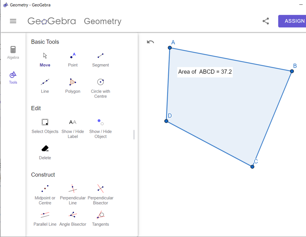 Цитата: ExDi от 31.03.2025 22:37:39по-моему это уроки на основы геометрии а не про инструменты геогебры. инструмента для построения незамкнутой линии в десктопной версии тоже нет, мне кажется подразумевается что надо расставить точки и соединить их отрезками, потом их можно двигать. я так и делаю чаще всего - сначала геометрическое построение через прямые точки отрезки и т п., потом по точкам поверх многоугольник, а геометрические построения сделать невидимыми.