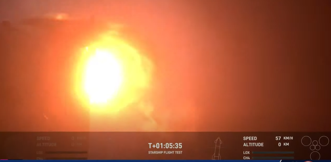 Корабль Starship в рамках миссии вышел в космическое пространство. Он пролетел по запланированной траектории в другую часть планеты, прежде чем выполнить контролируемый вход в атмосферу, пройдя через фазы пикового нагрева и максимальных аэродинамических нагрузок, прежде чем выполнить посадочный манёвр с приводнением в целевом районе в Индийском океане, через 1 час 5 минут и 40 секунд после старта.