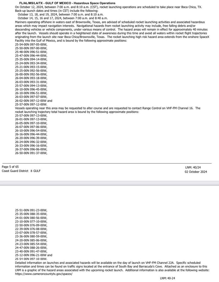 BREAKING: US Coast Guard documentation indicates a NET Launch Date of @SpaceX's Starship Flight 5 of October 12, between 07:00 and 08:10 local time.