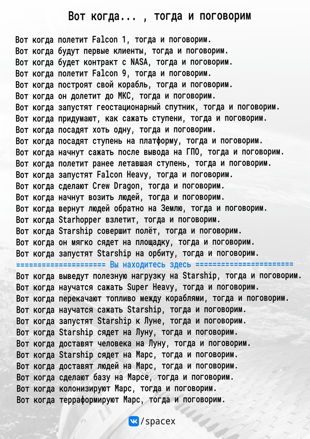 Цитата: amster от 08.06.2024 17:16:04Я и так пошел навстречу маскофилам не требуя многразовости от первого запущенного обитаемого Старшипа.