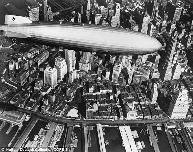 Ready to land: The 245m German airship was preparing to land at the Lakehurst Naval Air Station in Manchester Township, New Jersey