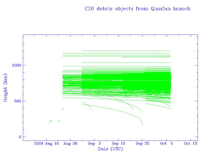 Meanwhile the debris objects from the disintegration of that launch's upper stage cover a wide range of altitudes