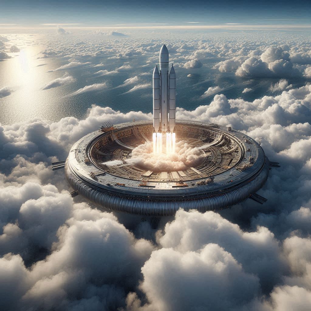 Если это ракета типа FH, то обращает на себя внимание слишком маленький размер платформы-дирижабля. Если рассматривать печально известный цеппелин Гинденбург, то его длина была 245 м, ширина порядка 40 м, а грузоподъёмность порядка 100 тонн. То есть размеры - он с диаметр этой платформы, притом толще этой платформы.  Стартовая масса FH больше 1400 тонн, то есть чтобы её нести нужно 15 цеппелинов.