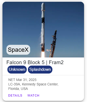 Fram2: Dragon v2 Crew C207 (Resilience) – Falcon 9 (B1085.6) – Kennedy SC LC-39A – 01.04.2025 01:46 UTC