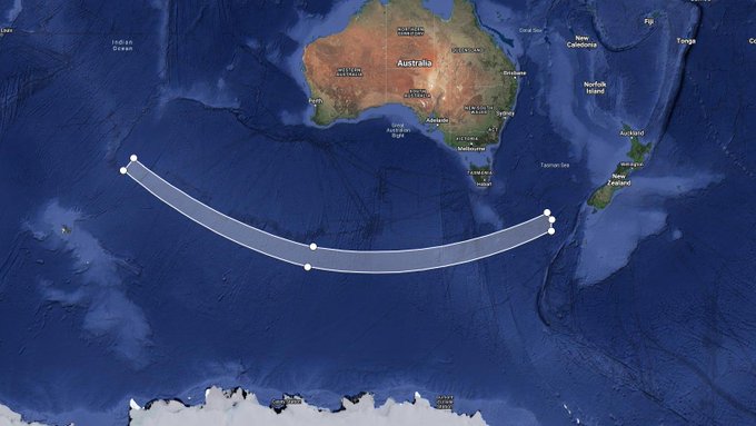 LHA map for #Starlink Group 8-6 from CCSFS SLC-40 NET 28 Aug 05:50 UTC, alternatively 29 Aug to 02 Sep based on issued NOTAM/NOTMARs. Estimated booster recovery 618km with fairing recovery ~700km downrange. Stage2 debris reentry south of Australia. http://bit.ly/LHA-40