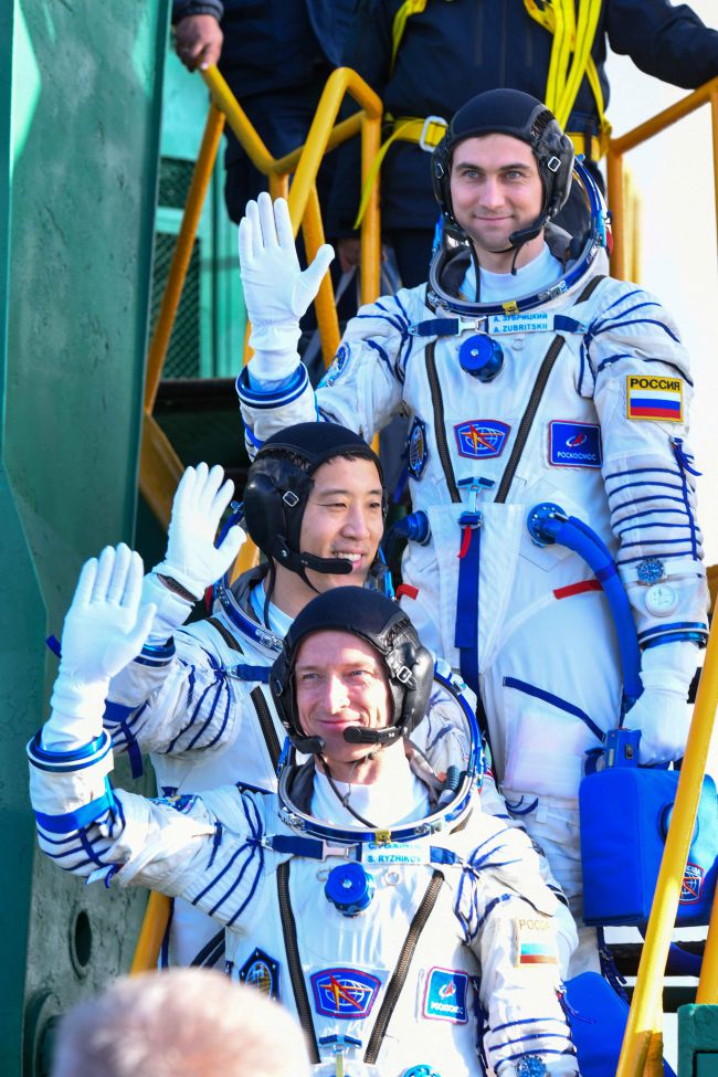 Сергея Рыжикова, Алексея Зубрицкого и Джонатана Кима встретили на станции космонавты Роскосмоса Алексей Овчинин, Иван Вагнер и Кирилл Песков, астронавты NASA Дональд Петтит, Энн МакКлейн, Николь Айерс и Такуя Ониси.