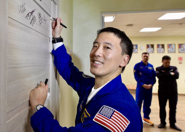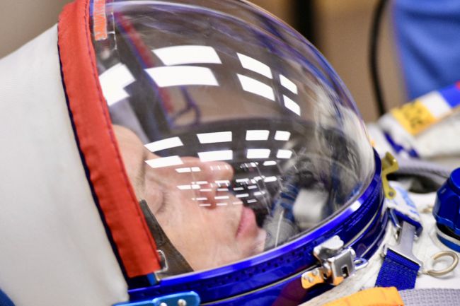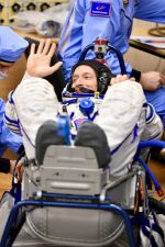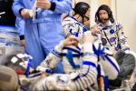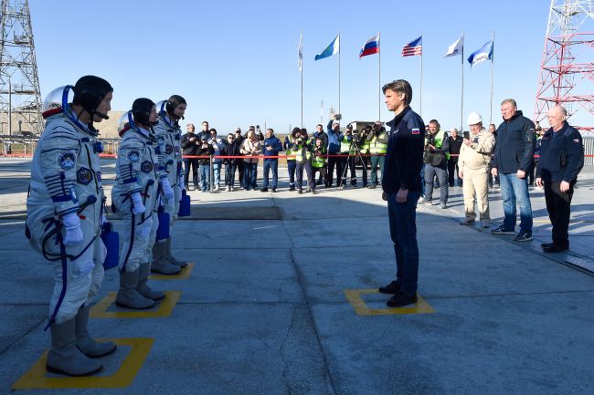 В монтажно-испытательном комплексе космонавты и астронавт надели скафандры и проверили их на герметичность. После доклада членам Государственной комиссии о готовности к полёту они заняли свои места в корабле «Союз МС-27».