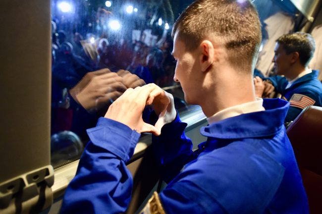Затем на специально оборудованном автобусе «Звёздный» Сергей Рыжиков, Алексей Зубрицкий и Джонатан Ким отправились на 254-ю площадку космодрома. За основным экипажем последовали их дублёры: Сергей Кудь-Сверчков, Сергей Микаев и Кристофер Уильямс.