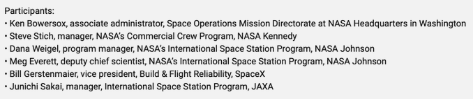 13/ Asked about whether the politics of the moment played into the vehicle swap, Stich talks about the busy ISS schedule and says the decision was made by other factors.