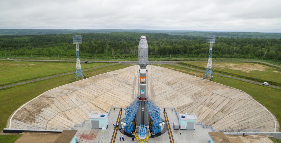 The Soyuz rocket was mounted on Launch Pad 1-S at the Vostochny site on July 22, in preparation for the mission.