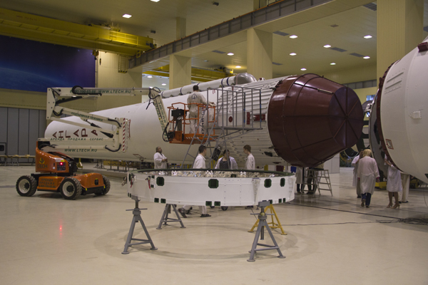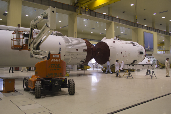 А меня например напрягает, какого фига применяется какой-то подъёмник при работе с изделием на заводе-изготовителе. Должна была быть изготовлена штатная оснастка и применяться пролётные краны. На Протоне такого безобразия нет.