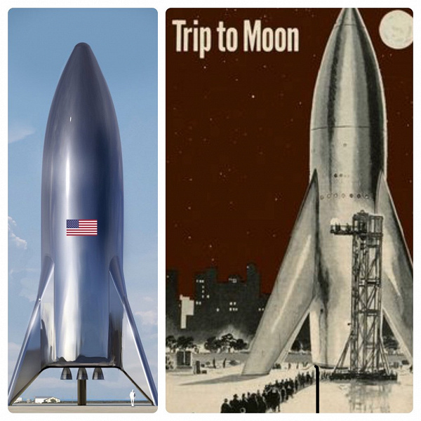 Одна только картинка раннего варианта СШ с посадкой на стабилизаторы чего стоит, в духе фантастики 50х: