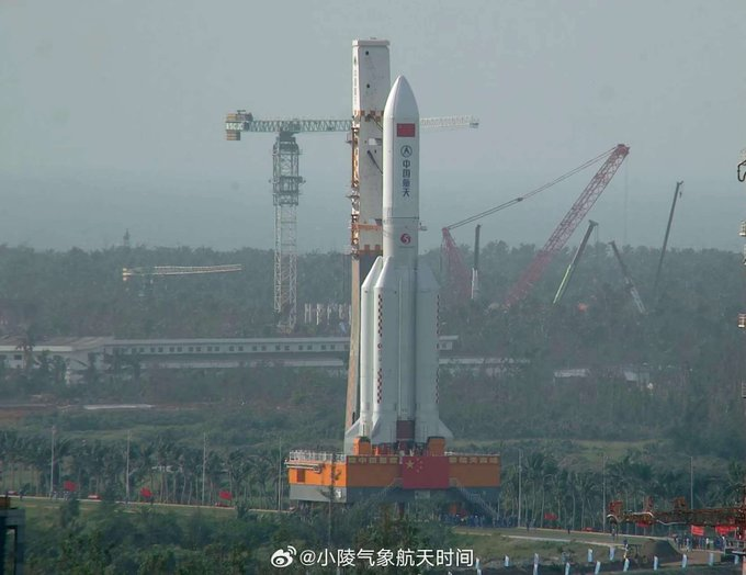 CZ-5B rolled out & at back ground might be base of the CZ-10's launch tower. pic via https://weibo.com/5558131549/P4cyNeeEa