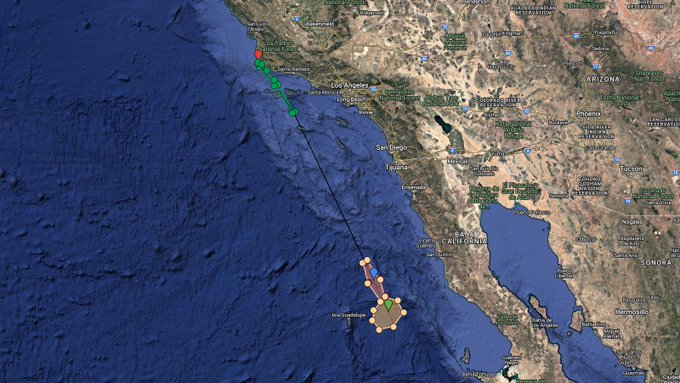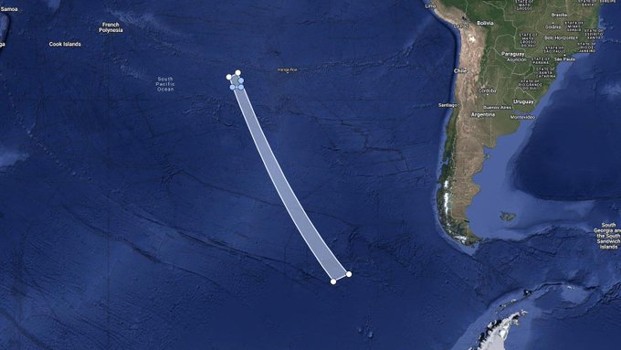 LHA map for #NROL-149 mission from VSFB SLC-4E valid for NET 17 Dec 09:20 UTC, alternatively 18 to 23 Dec based on issued NOTAM/NOTMARs. Estimated booster recovery ~600km with fairing recovery ~685km downrange. S2 debris reentry area in South Pacific. http://bit.ly/LHA-45