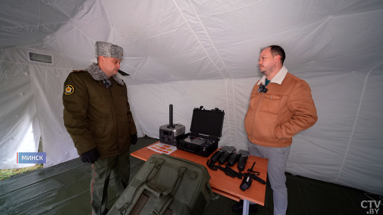 ...."Где-то в Минске точка доступа в интернет: она транслируется через станцию спутниковой связи, выходит сюда и через роутер Wi-Fi раздает интернет", - пояснил принцип работы военный специалист.