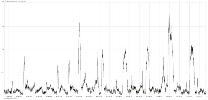 Interesting light curve from 2025-013A, deployed on January 20. Recorded today, 24.01.2025 from 18:287:38 - 18:33:39 UTC