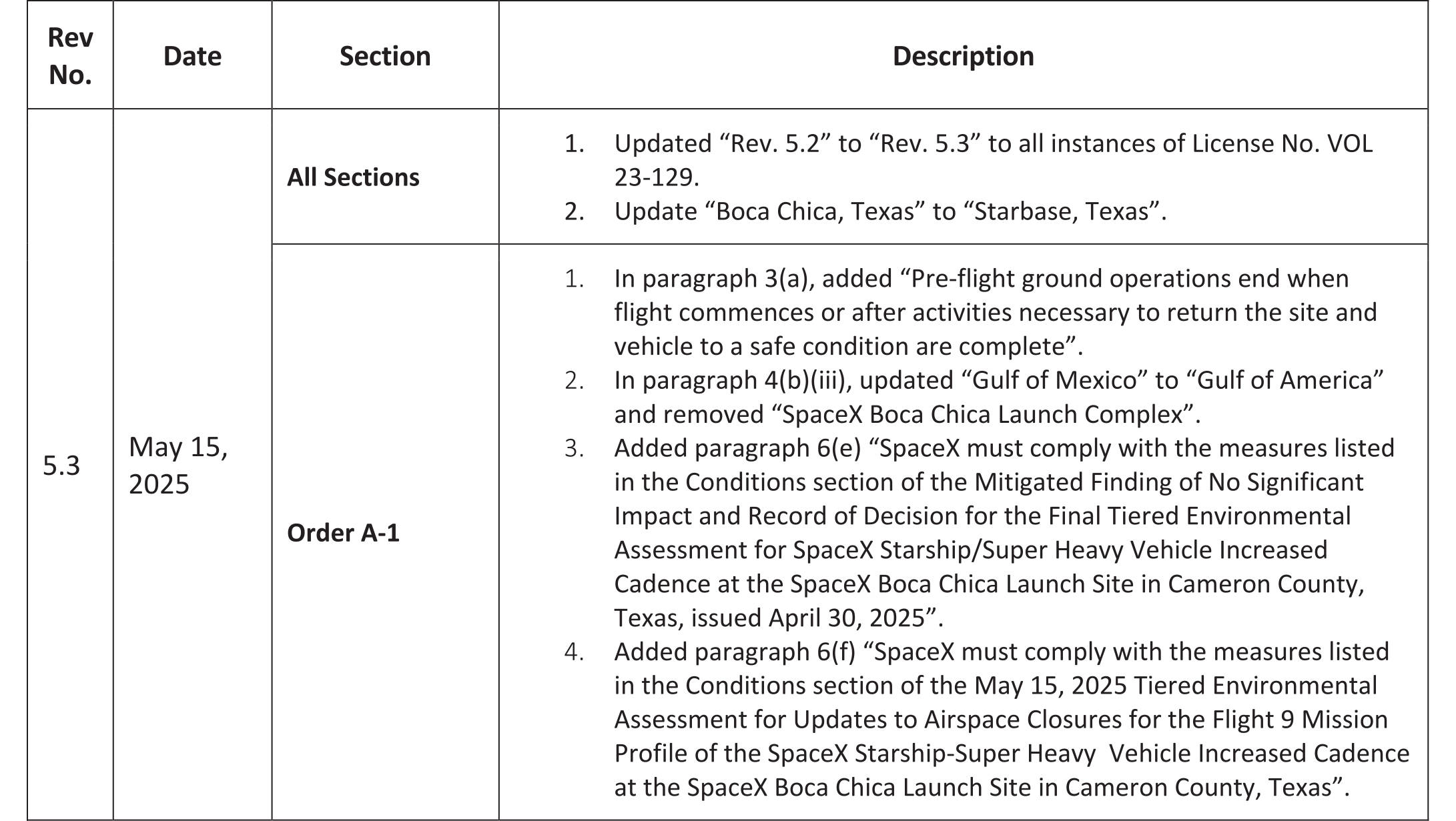 Насколько я понял, это не лицензия на 9-й полет, а общая лицензия на запуски из Бока Чики, которую проапдейтили до версии 5.3.
