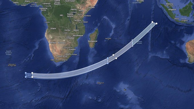 LHA map for #Starlink Group 12-6 from KSC LC-39A NET 30 Dec 05:00 UTC, alternatively 31 Dec to 03 Jan based on issued NOTAM/NOTMARs. Planned B1078.16 recovery 600km with estimated fairing recovery ~670km downrange. S2 debris reentry area in Indian Ocean. http://bit.ly/LHA-45