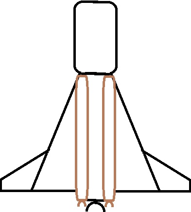 2) Значительная часть баков первой ступени находится ниже камер сгорания двигателей - как обеспечить подачу топлива в двигатели? Ставить насосы (?) - чем их питать? Наддув - высоковато нужно поднимать компоненты топлива (баки наддува не показаны). Двигатели, 5 штук, теоретические - характеристики не объявлены даже приблизительно.