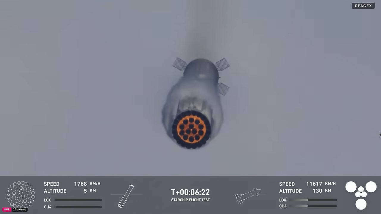 Super Heavy/Starship (B15/S34) – восьмой испытательный полет – Starbase,TX – 06.03.2025 23:30 UTC – авария