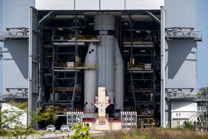 Сборка ракеты ведется на стартовой площадке ELA4 в Гвианском космическом центре. Полезная нагрузка для пуска — французский разведывательный спутник CSO-3 — уже прибыла в аэропорт во Французской Гвиане и доставлена на космодром.