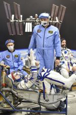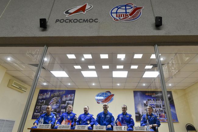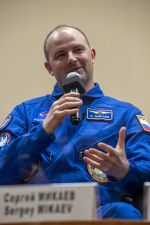 После заседания Государственной комиссии, которая утвердила составы экипажей предстоящей экспедиции на МКС, на Байконуре состоялась предстартовая пресс-конференция.