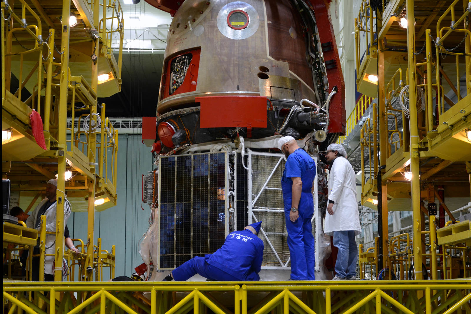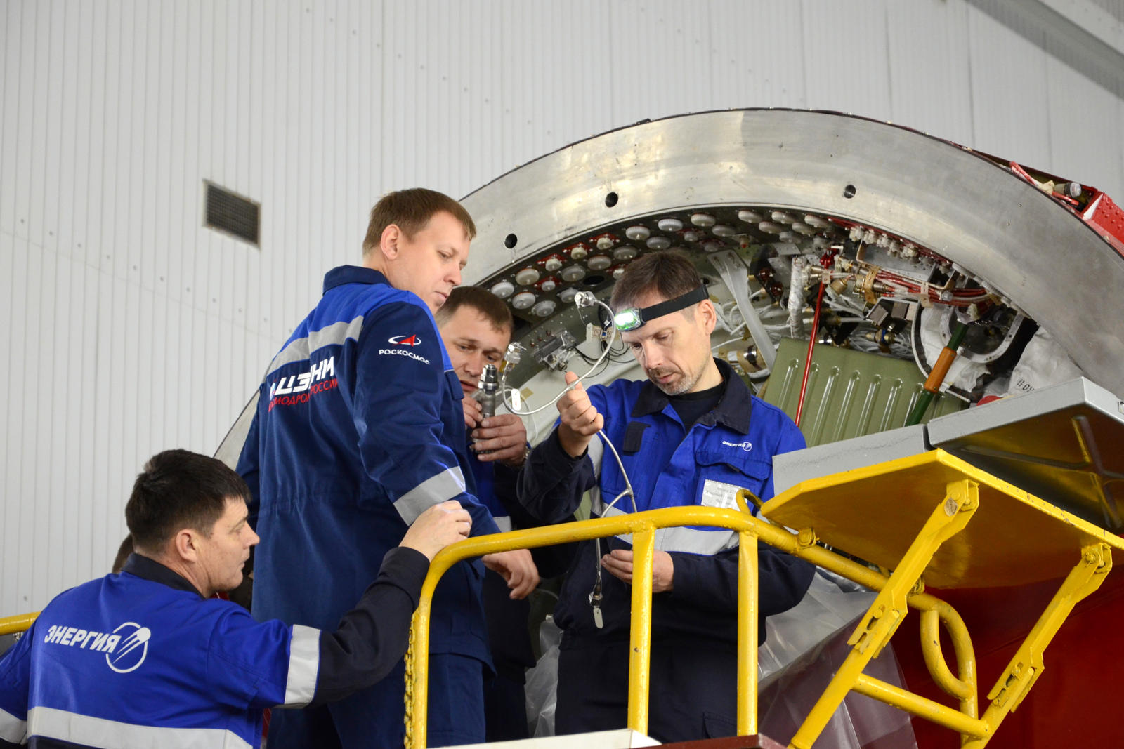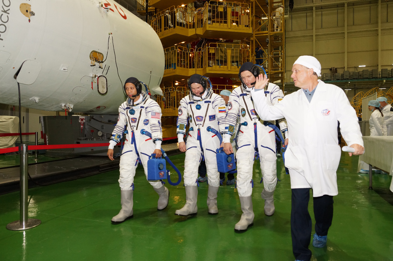 Кроме того, экипаж ознакомился с оборудованием, которое им предстоит доставить на борт, в так называемой «чистой» комнате. Через несколько дней, ко времени второй примерки. оно займёт своё место внутри корабля.