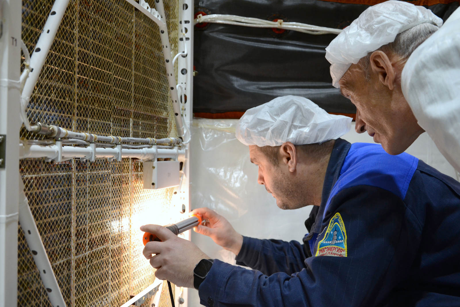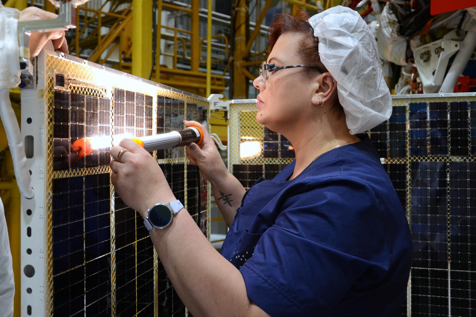 В монтажно-испытательном корпусе площадки № 254 космодрома Байконур продолжается предполётная подготовка транспортного пилотируемого корабля «Союз МС-28». Сегодня специалисты РКК «Энергия» и КЦ «Южный» успешно выполнили плановую операцию «контрольной засветки» солнечных батарей системы бортового энергоснабжения.