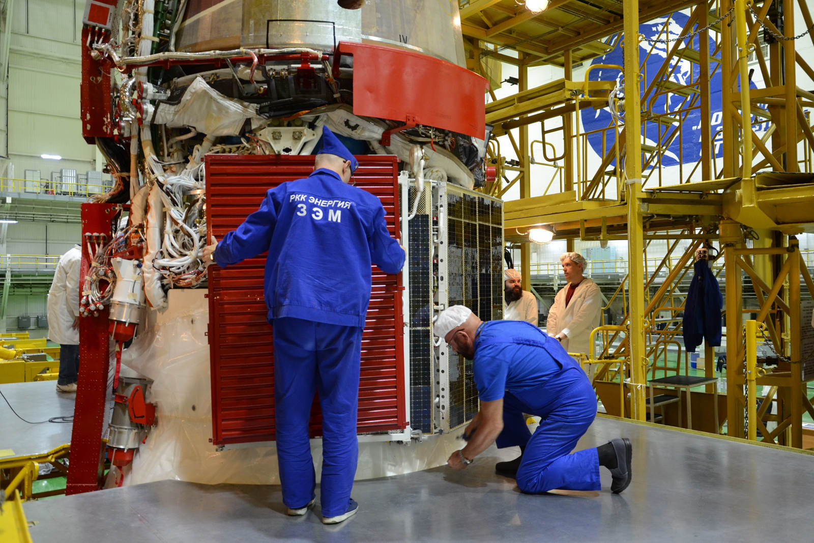 После заправки корабль будет доставлен в монтажно-испытательный корпус площадки 254 и установлен на рабочее место для проведения дальнейших работ, включающих укладку доставляемых грузов, проверку герметичности люков и контрольное фотографирование изделия, монтаж экранно-вакуумной теплоизоляции на поверхности отсеков, контрольное взвешивание корабля и его стыковку с переходным отсеком ракеты-носителя.