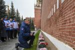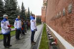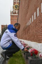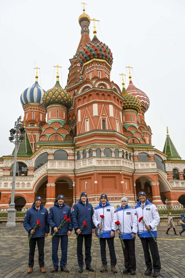 Далее основной и дублирующий экипажи, а также сопровождающие их работники ракетно-космической отрасли отправились в Москву. Делегация возложила цветы и почтила память Сергея Королёва, Юрия Гагарина и космонавтов, захороненных в некрополе у Кремлевской стены.