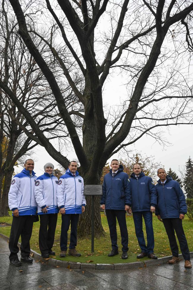 После традиционного завтрака в кругу коллег космонавты и астронавты отправились на аллею Центра для совместных фотографий. На торжественном мероприятии также присутствовали родные и близкие членов экипажей, руководство ЦПК, космонавты, уже совершившие свои космические полеты и готовящиеся к ним.