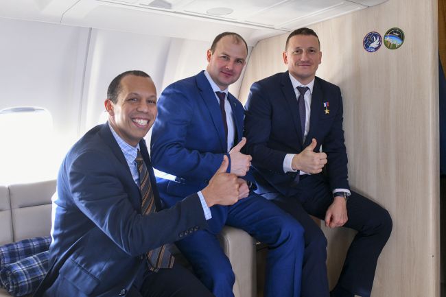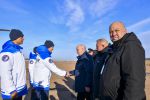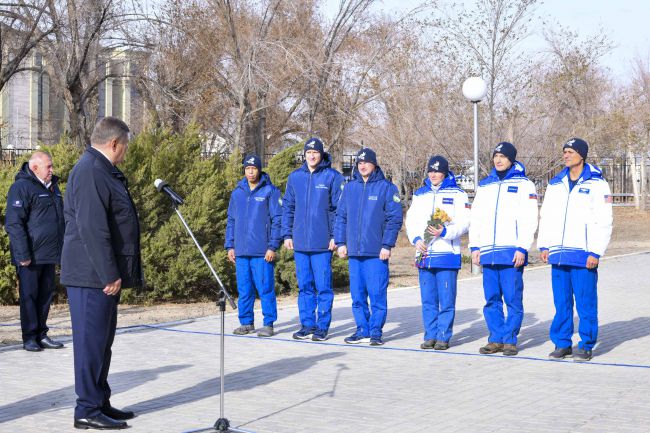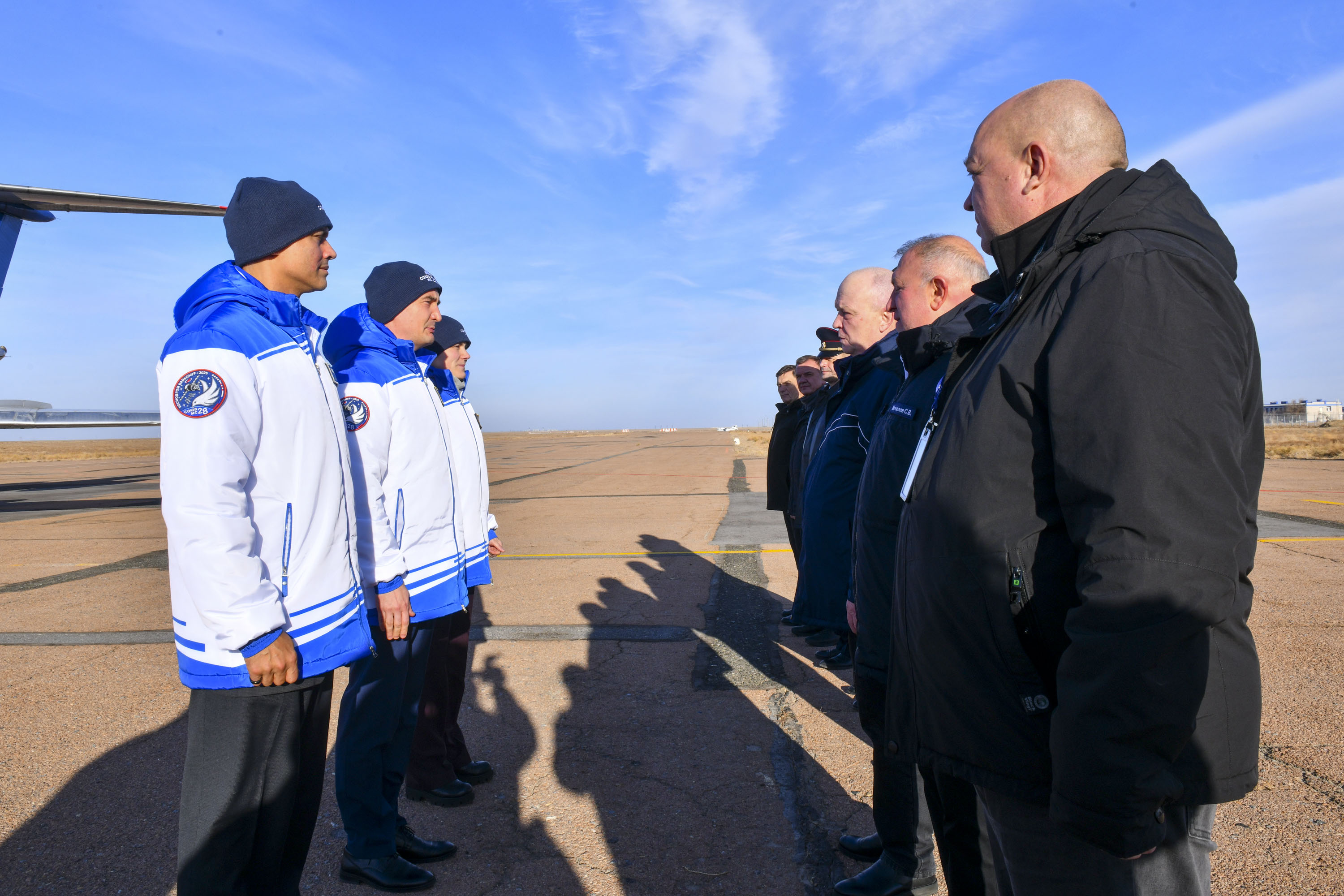 После торжественных проводов космонавты и астронавты отправились в Казахстан для прохождения завершающего этапа предстартовой подготовки.