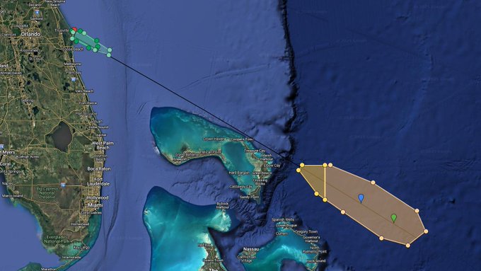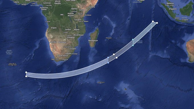 LHA map for #Starlink Group 12-18 from CCSFS SLC-40 NET 11 Feb 17:00 UTC, alternatively 12 to 17 Feb based on issued NOTAM/NOTMARs. Planned booster recovery 600km with estimated fairing recovery ~670km downrange. S2 debris reentry area in Indian Ocean. http://bit.ly/LHA-47