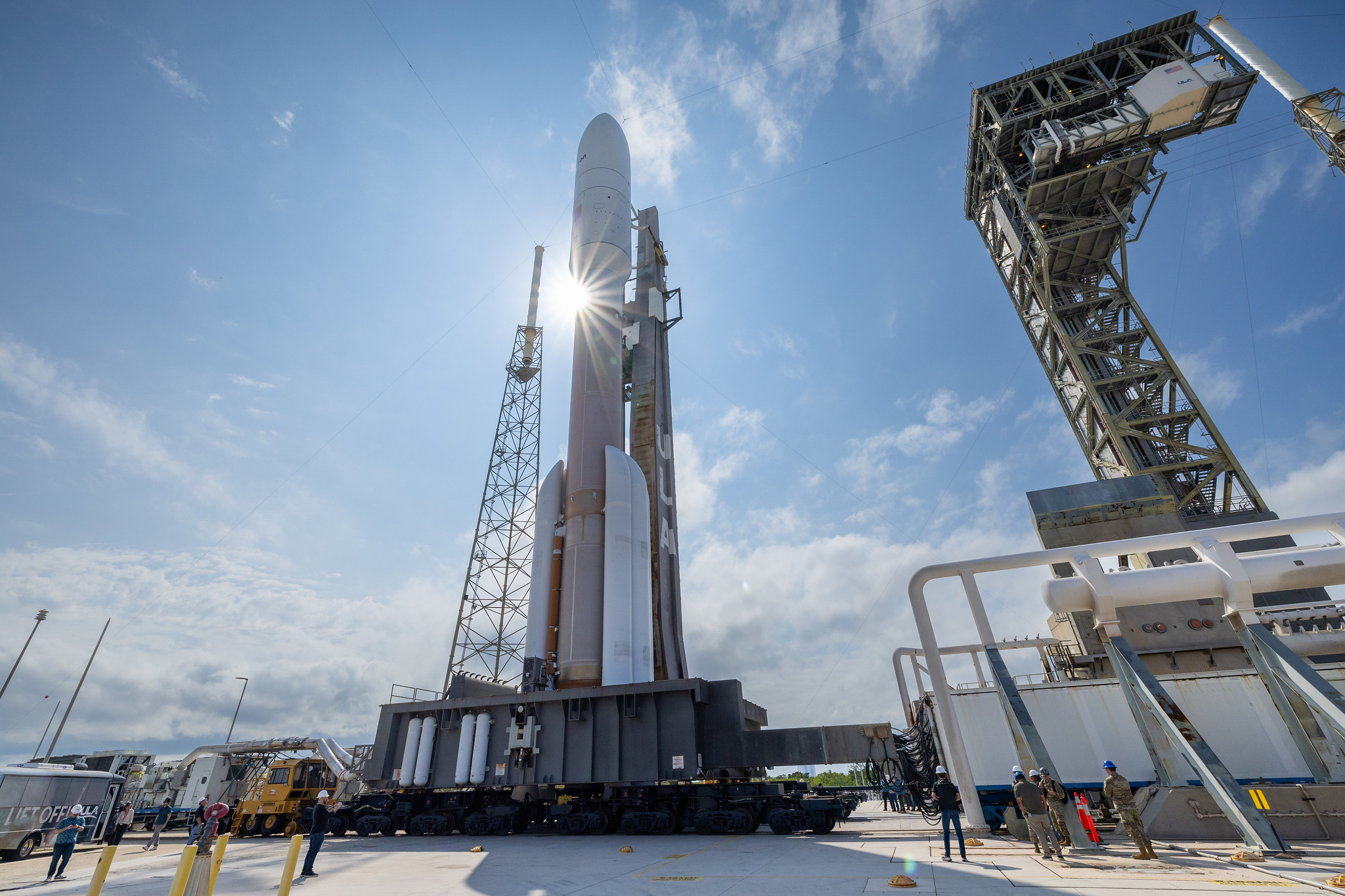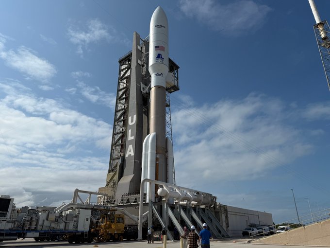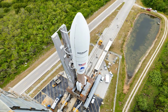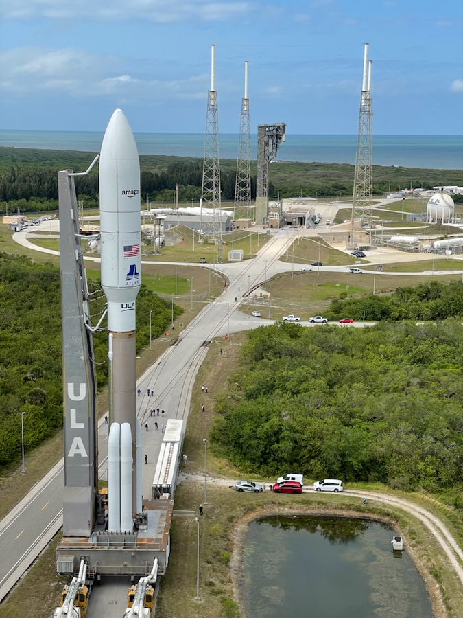 Our #AtlasV 551 rocket is atop Space Launch Complex-41. We plan to light the engines and take #ProjectKuiper's first satellites into low Earth orbit (LEO) at 7 p.m. EDT (2300 UTC) on Wednesday.