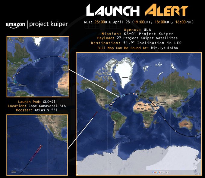 @ulalaunch is scheduled to launch the @amazon @ProjectKuiper KA-01 mission from Florida NET 2300UTC