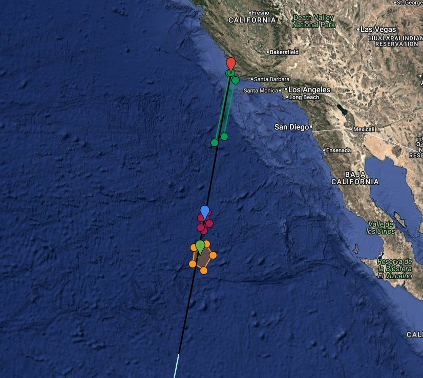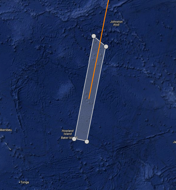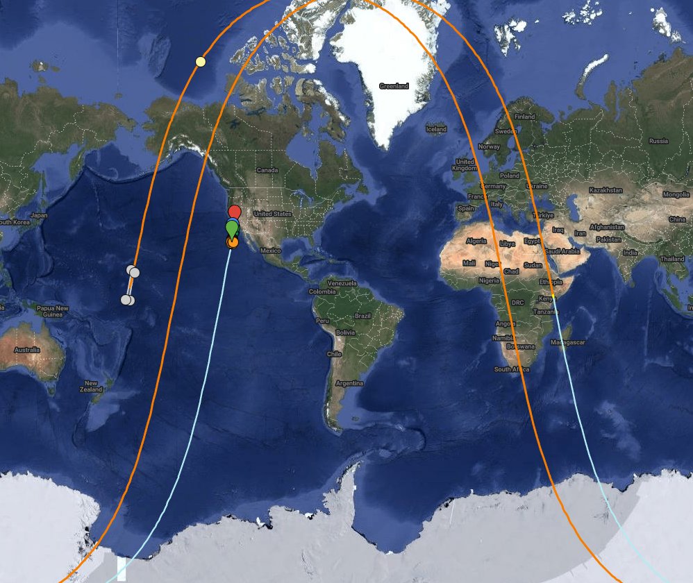 This shows the reentry area for Falcon 9 and NASA's R5-S7 payload.