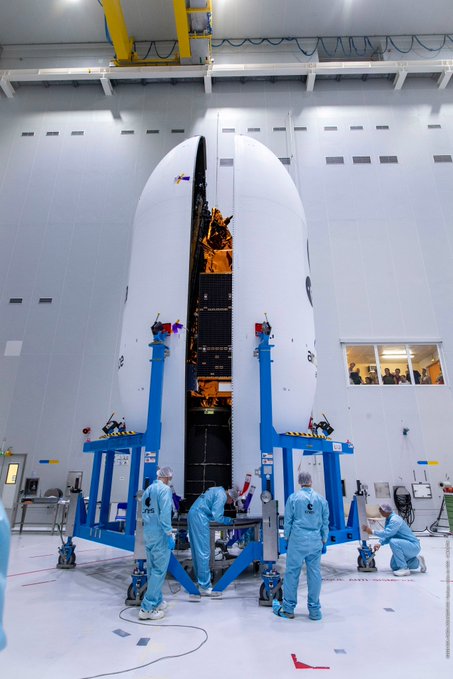 The satellite encapsulation has taken place: the half-shells of the launcher's fairing were gently closed around @ESA_EO @esa Biomass satellite!