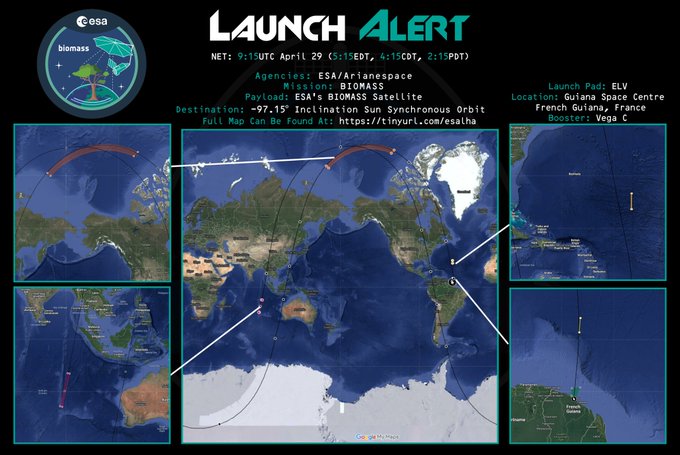 @ArianeGroup is set to launch @esa 's BIOMASS satellite from French Guiana, France. NET: 0915 UTC