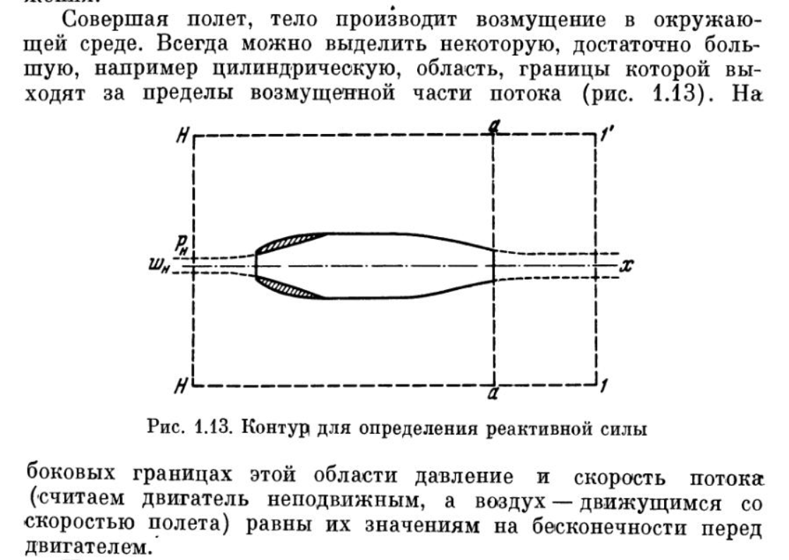Пунктирная линия показывает падение давления и ускорение потока от нулевого сечения, невозмущенного потока до входа в эжектор, то, о чем я ранее упоминал. От сечения невозмущенного потока до входа в эжектор уменьшается площадь сечения, отсюда, растет скорость(динамическое давление) и падает статическое давление потока. По Бернулли. Я выше написал. Или, по школьному, активная струя уносит газ от входа к выходу, образуется пустота, которую наружный воздух стремится занять("Природа не терпит пустоты!"(С)) и для этого наружному воздуху приходится ускоряться, далее опять смотрим Бернулли. В месте контакта активной струи и присоединенной ускорение интенсифицируется, также как интенсифицируется приращение скорости при контакте, например, с лопастью винта. Именно поэтому я также ранее упоминал, что вклад разряжения на впуске в тягу не более 25% в лучшем случае, остальные 75 зарабатываются в трубе. Да и те 25 это тоже следствие работы активной струи в трубе же.
